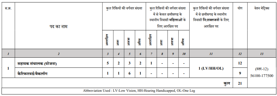 🔹 Reservation for Chhattisgarh local women and PwD (LV/HH/OL) is applicable as per state rules.